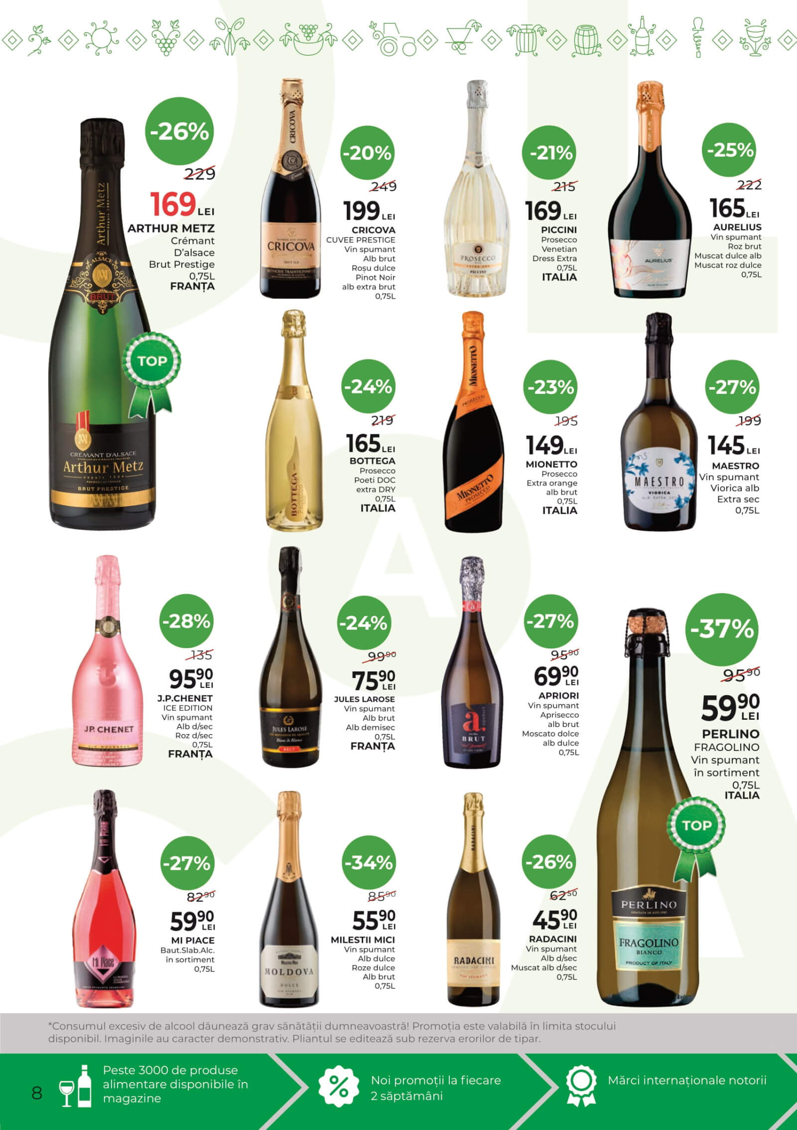 MILESTII MICI Vin spumant Alb dulce Roze dulce Alb brut 0,75L
