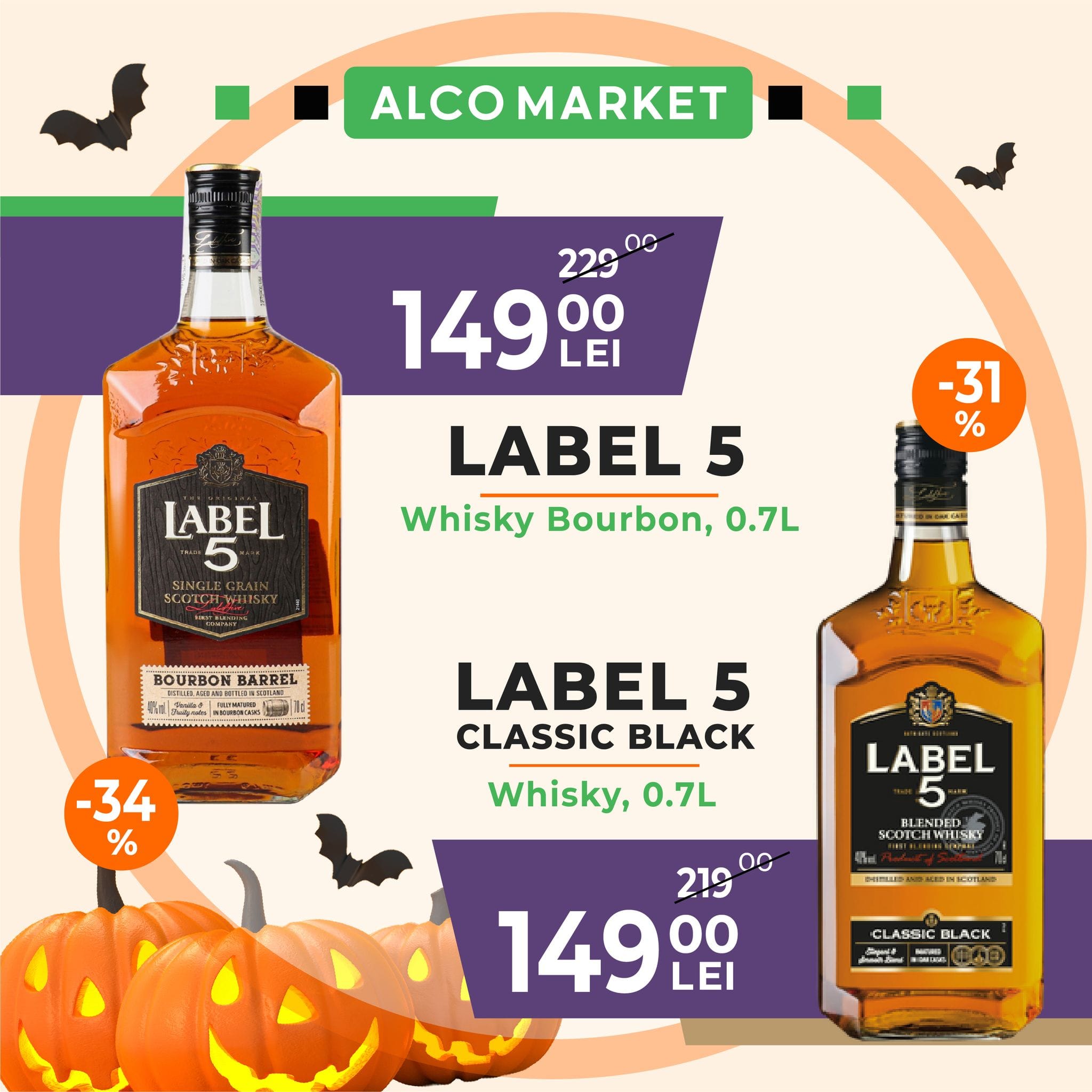| 30-05 Nov | alcomarket | −34% | 229.00 | 149.00 | 213 | LABEL 5 Whisky Bourbon 0.7L |