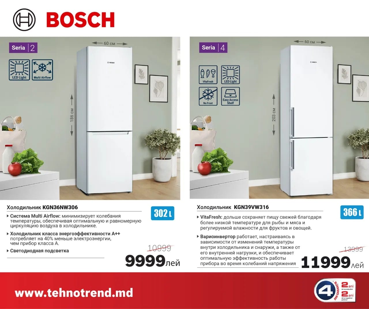 Холодильник BOSCH KGN39VW316 366L