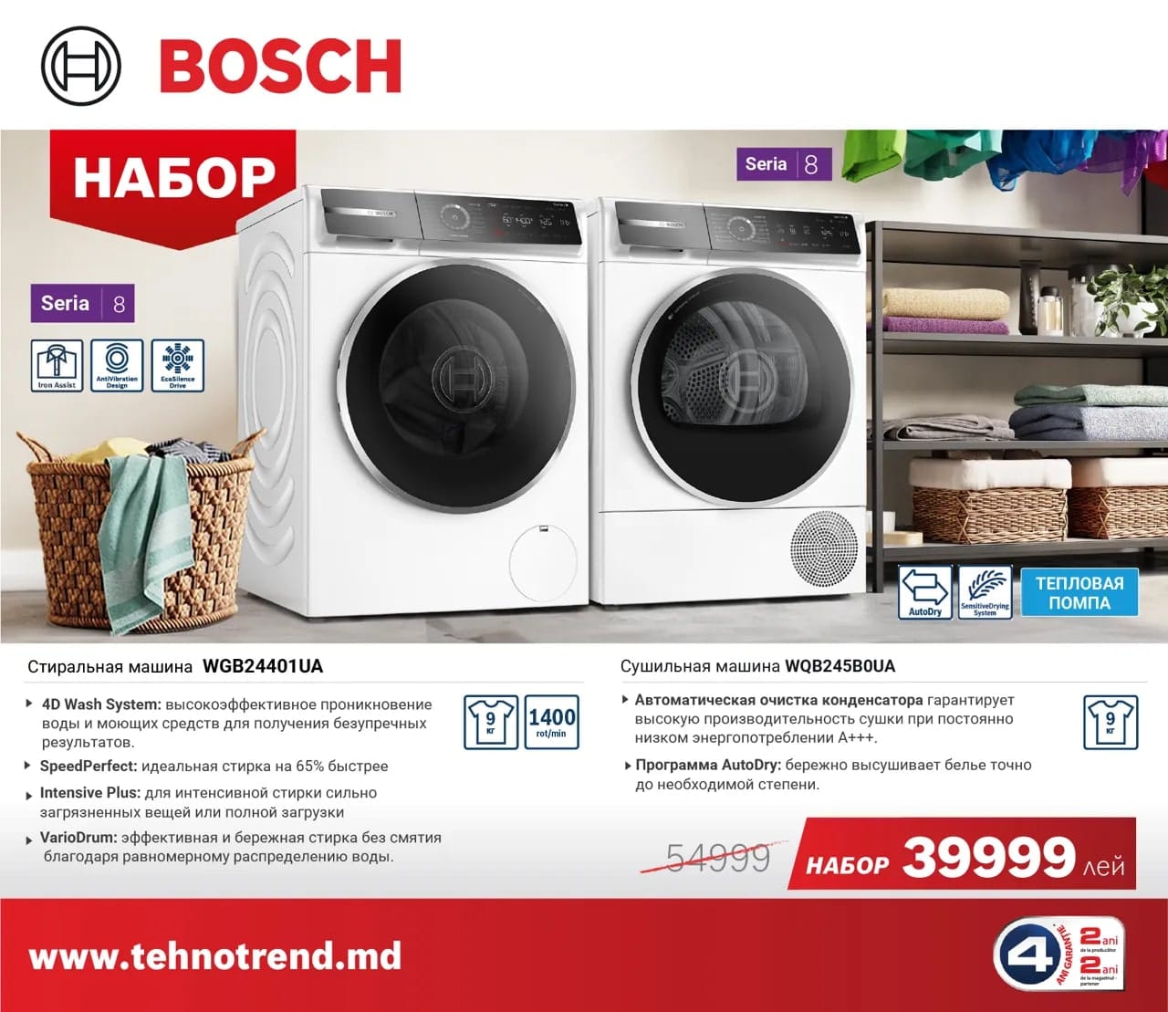 Набор Bosch Стиральная машина WGB24401UA + Сушильная машина WQB245B0UA
