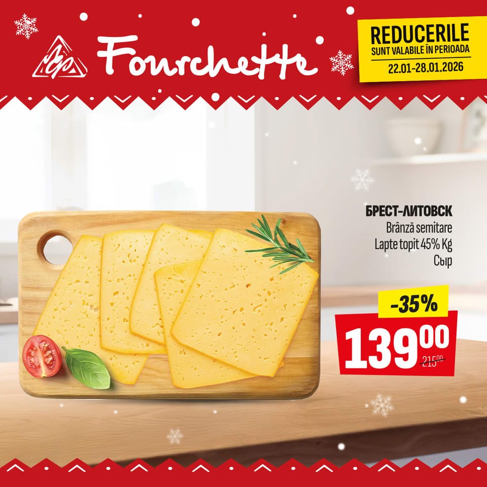 Брест-Литовск Brânză semitare Lapte topit 45% Kg Сыр