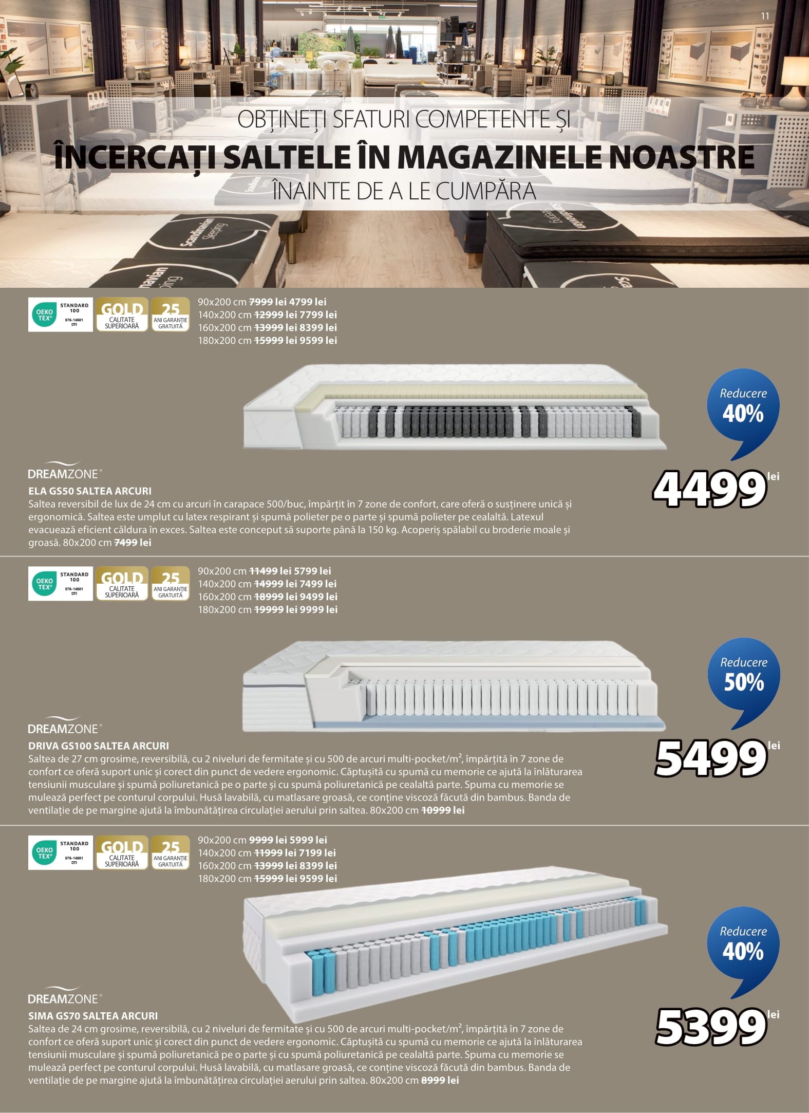 DREAMZONE ELA GS50 Saltea Arcuri 90x200 cm, 140x200 cm, 160x200 cm, 180x200 cm