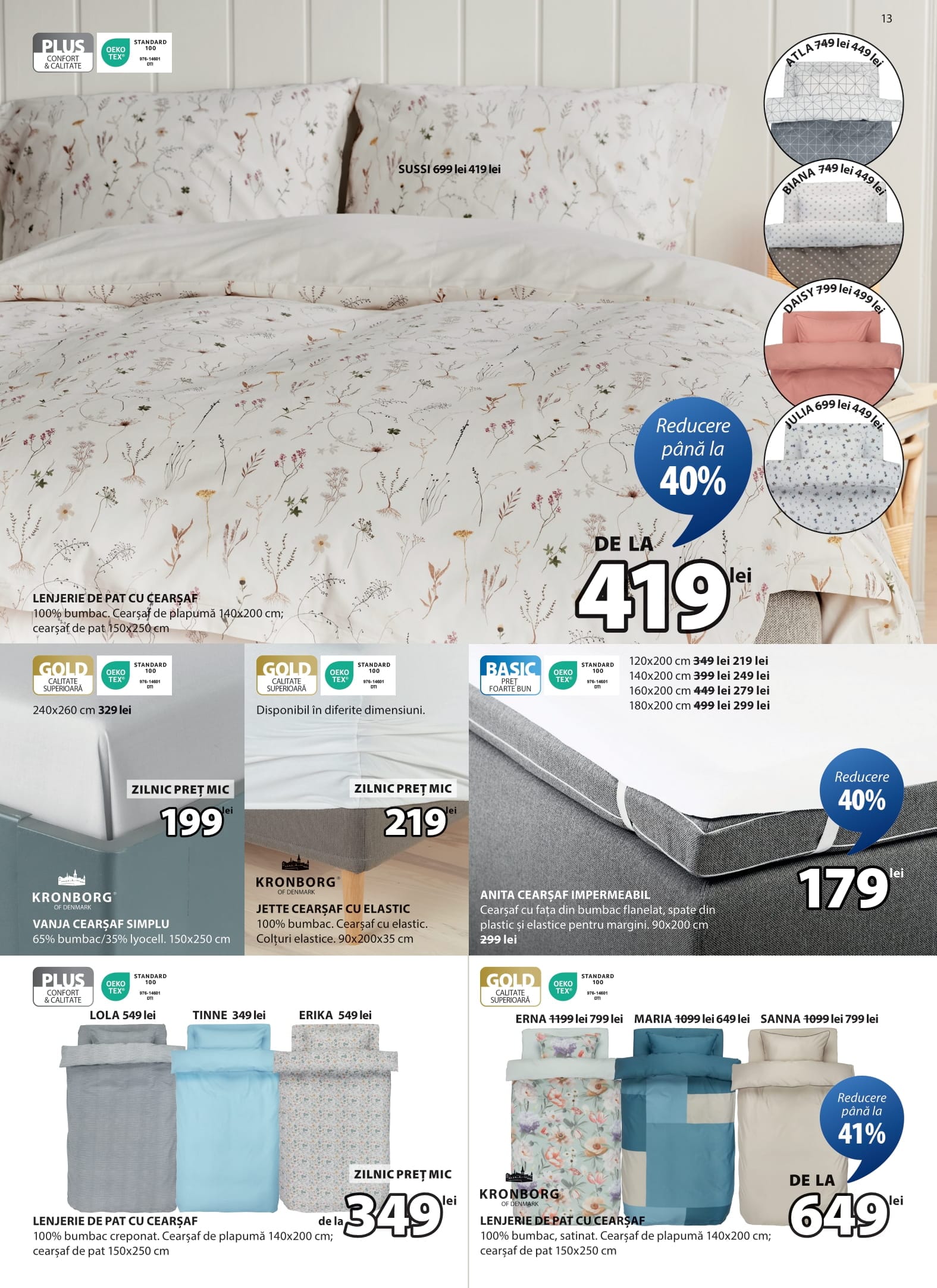 KRONBORG ERNA LENJERIE DE PAT CU CEARȘAF 100% bumbac, satinat. Cearșaf de plapumă 140x200 cm; cearșaf de pat 150x250 cm