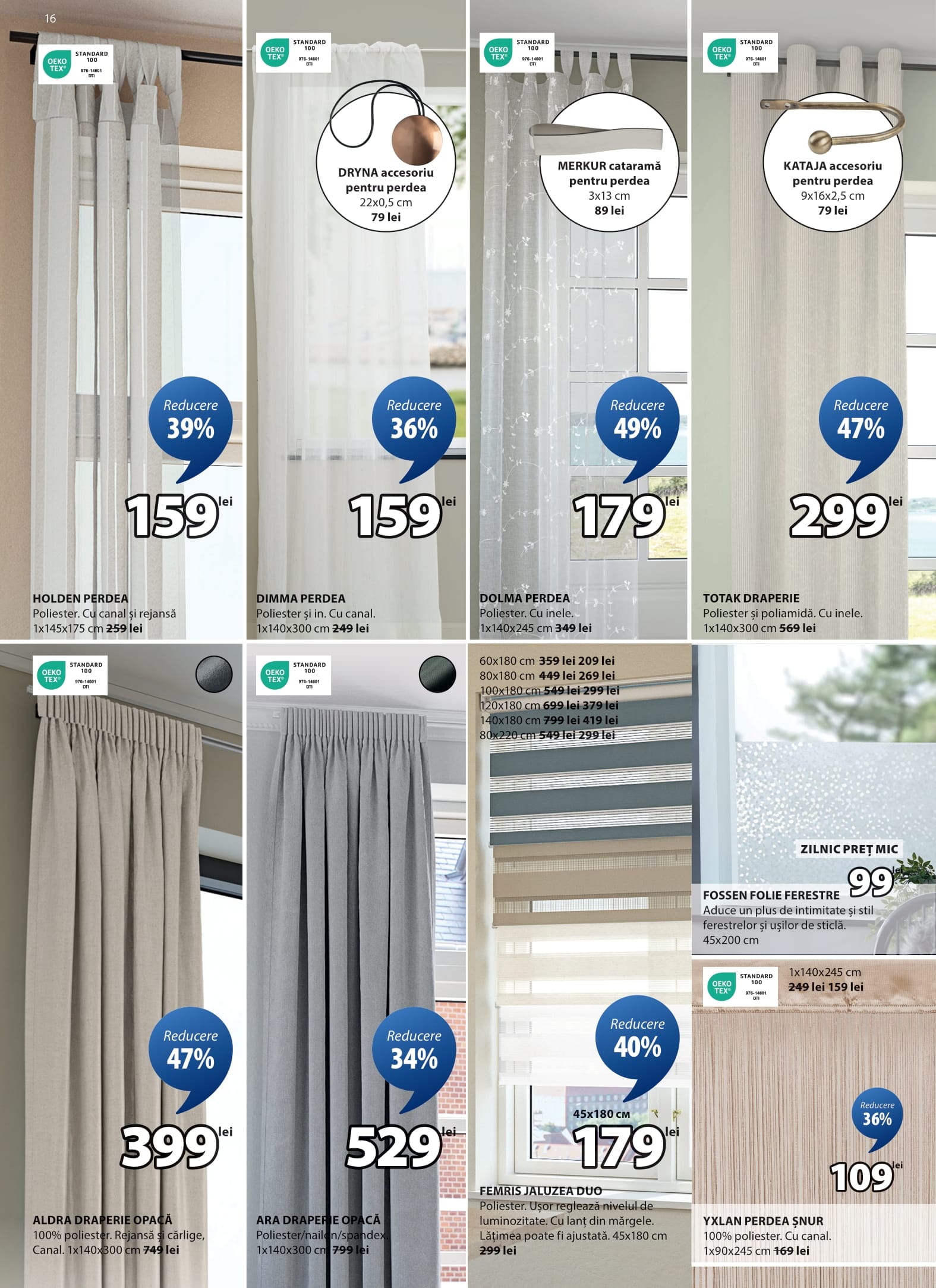 ALDRA DRAPERIE OPACĂ 100% poliester. Rejanșă și cârlige. Canal. 1x140x300 cm