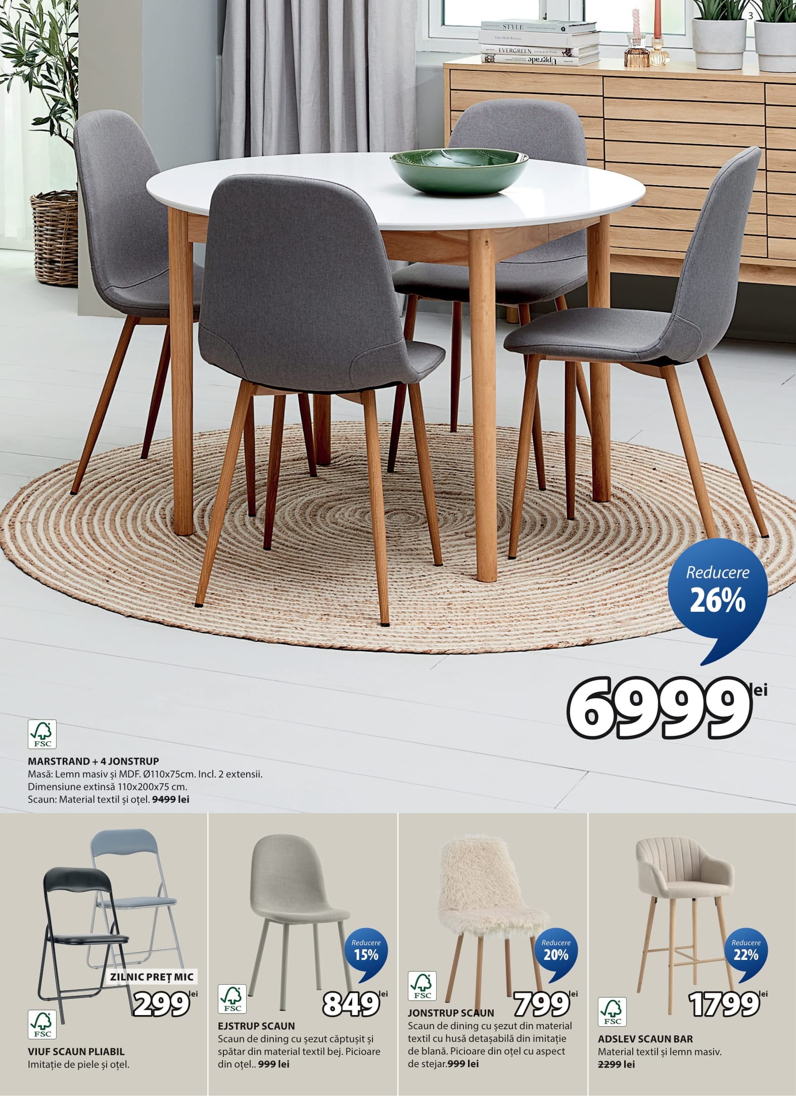EJSTRUP SCAUN scaun dining cu șezut căptușit și spătar material textil bej picioare oțel