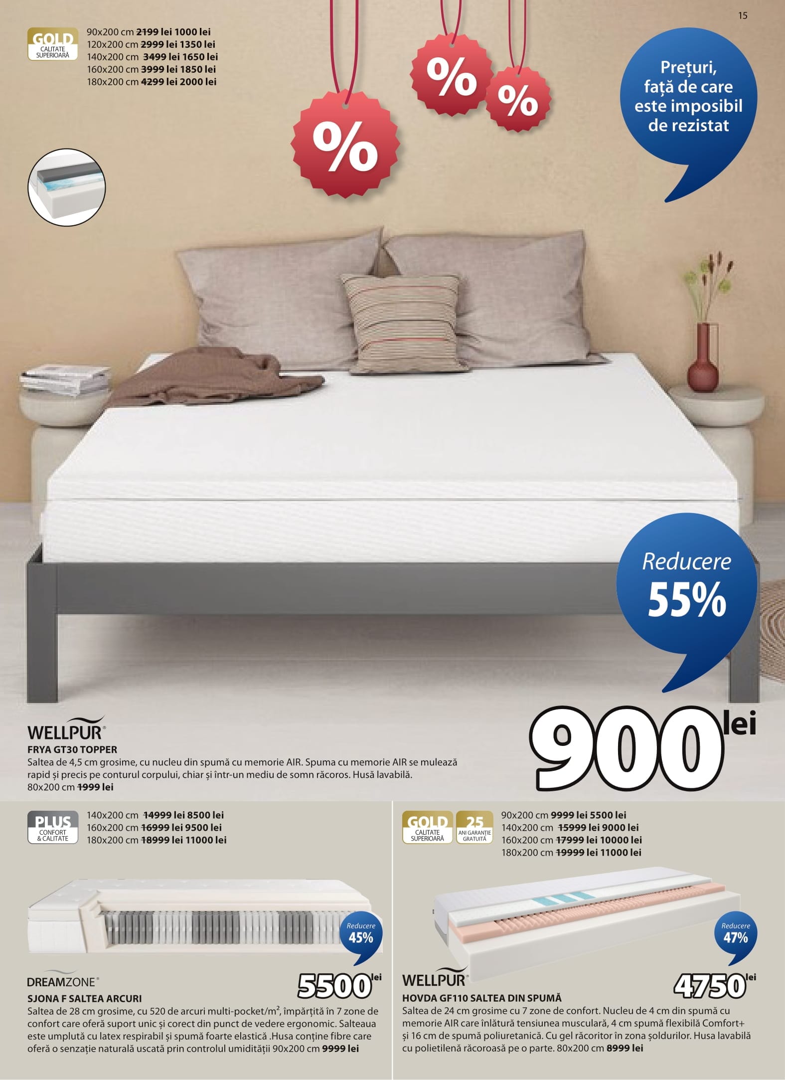 WELLPUR HOVDA GF110 SALTEA DIN SPUMĂ Saltea de 24 cm grosime cu 7 zone de confort
