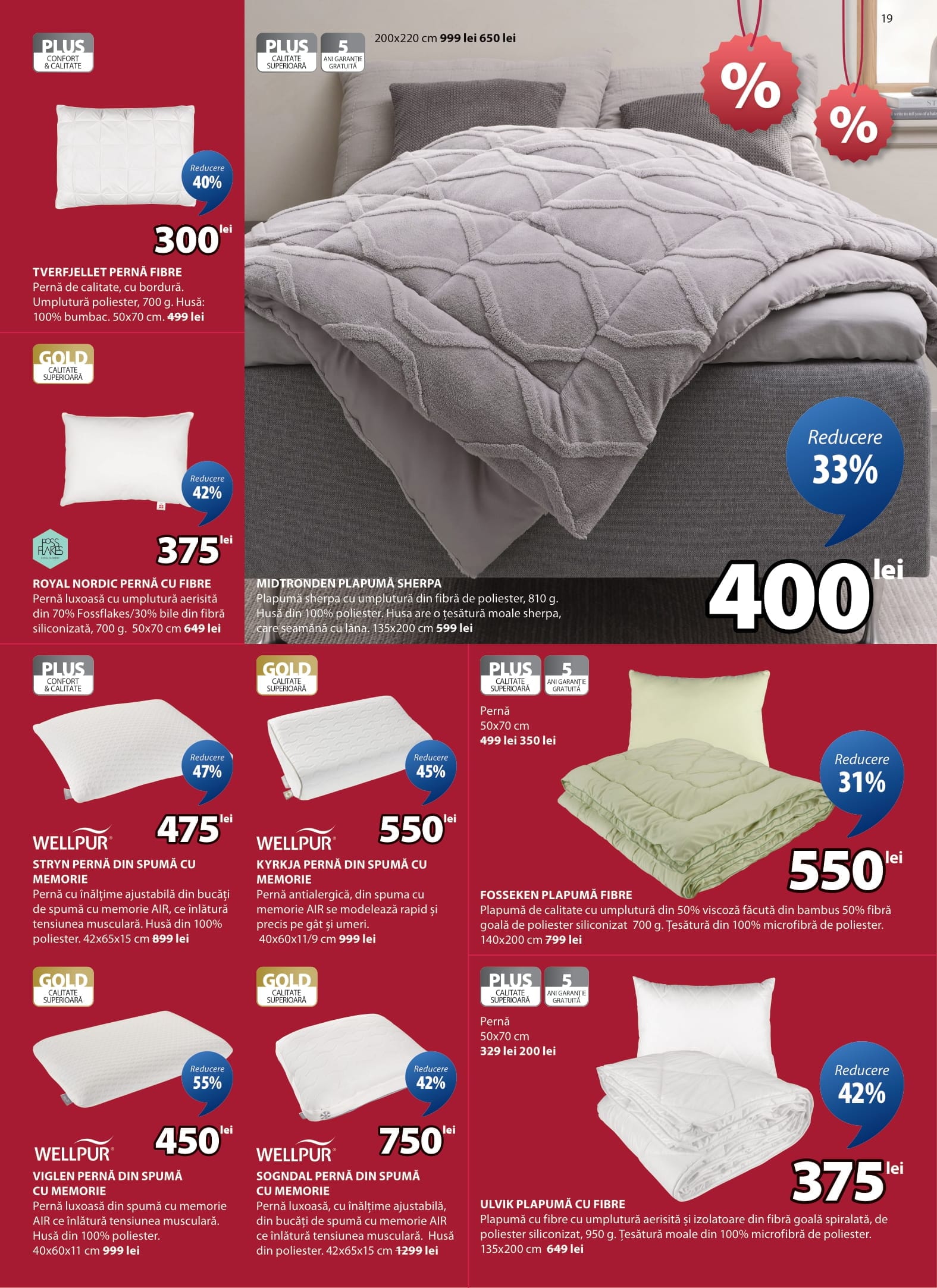 PLUS ULVIK PLAPUMĂ CU FIBRE Plapumă cu fibre cu umplutură aerisitǎ șî izolatoare din fibră goală spiralată, de poliester siliconizat, 950 g. Țesătură moale din 100% microfibră de poliester. 135x200 cm