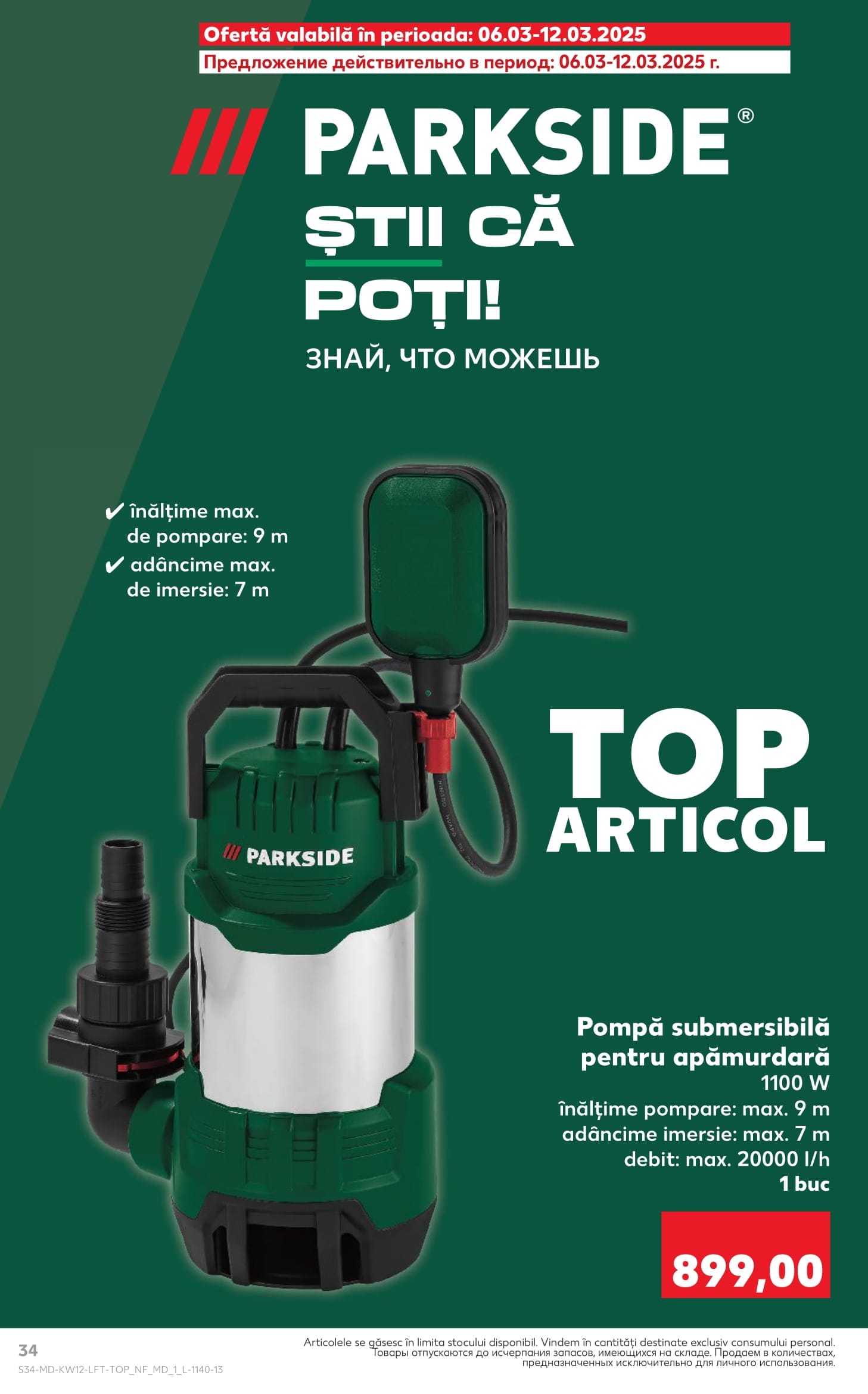 PARKSIDE Pompă submersibilă pentru apămurdară 1100 W