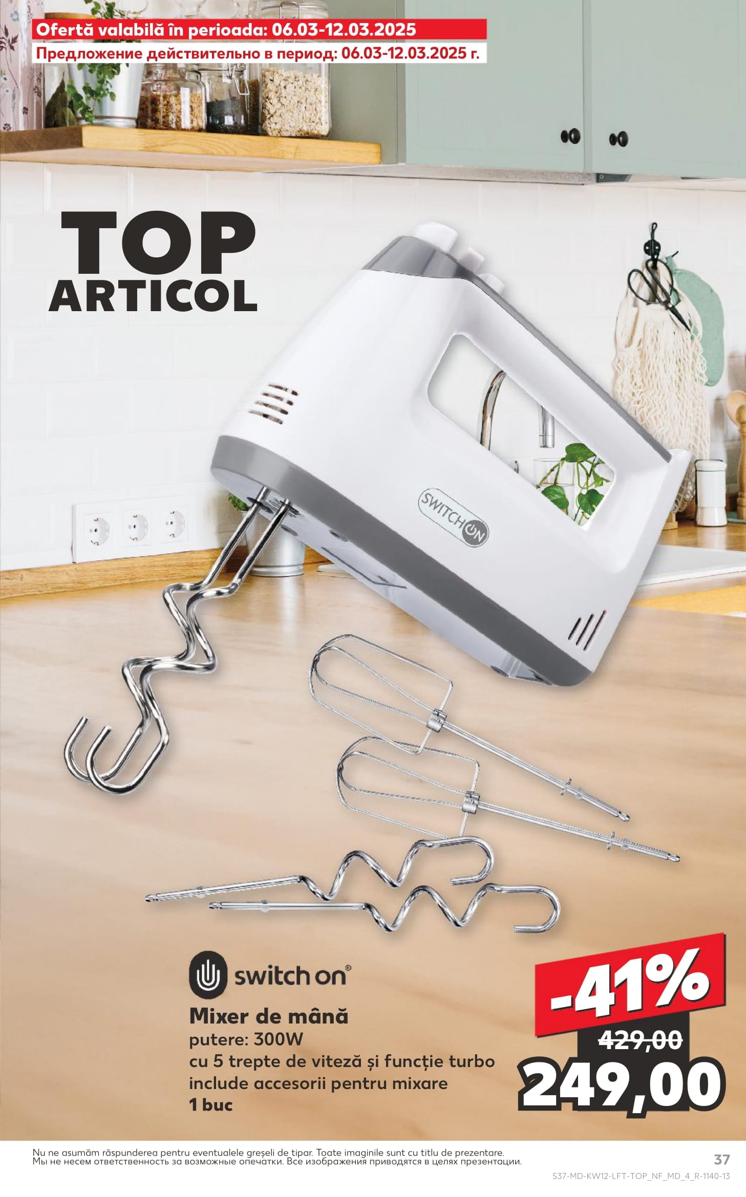 switch on Mixer de mâna putere 300W cu 5 trepte de viteza si functie turbo include accesorii pentru mixare 1 buc