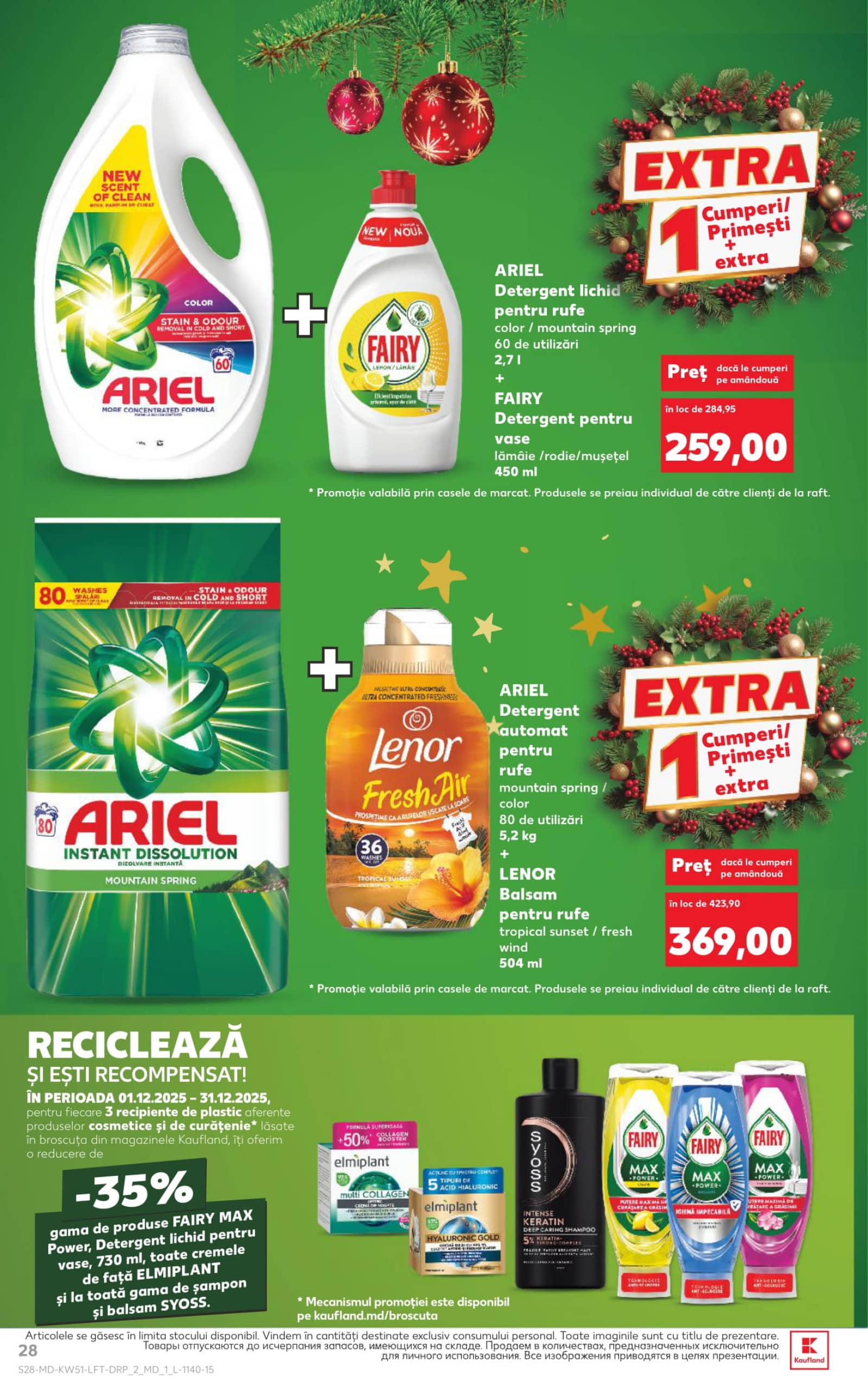 ARIEL Detergent lichid pentru rufe color / mountain spring 2.7 l + FAIRY Detergent pentru vase lămâie / rodie / mușețel 450 ml