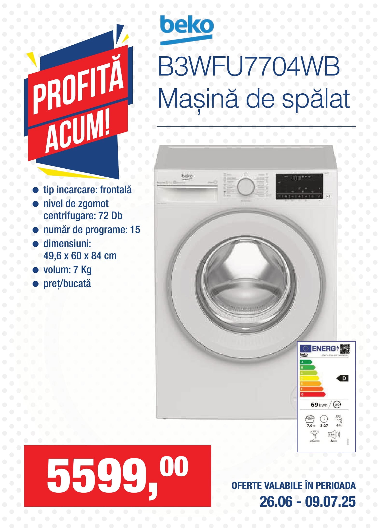 beko B3WFU7704WB Mașină de spălat