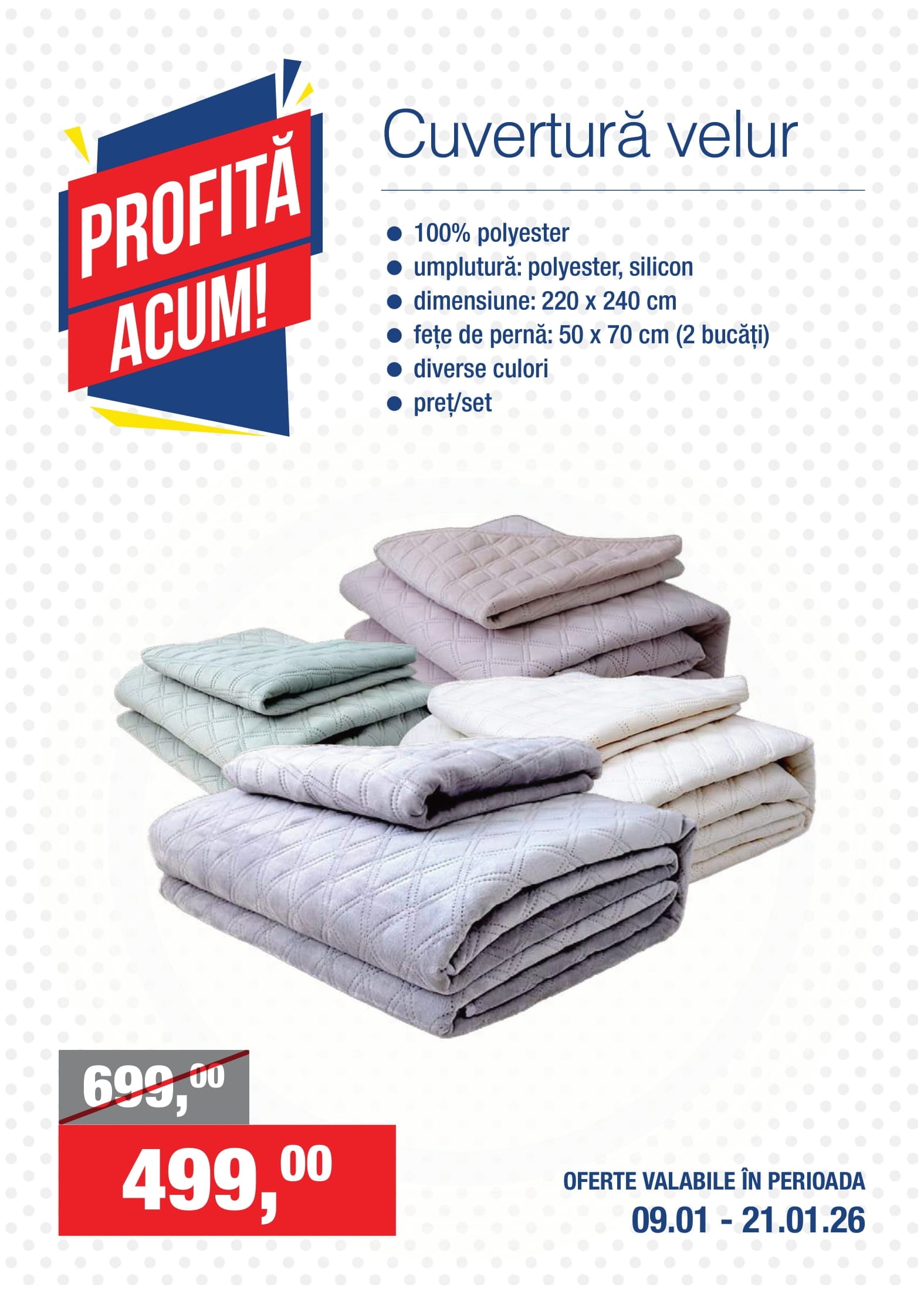 Cuvertură velur 220 x 240 cm