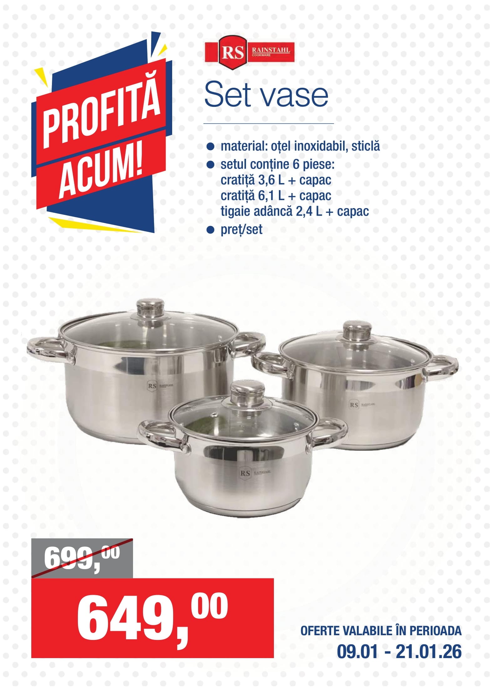 RS Rainstahl Set vase, cratita 3.6 L, cratita 6.1 L, tigaie adanca 2.4 L