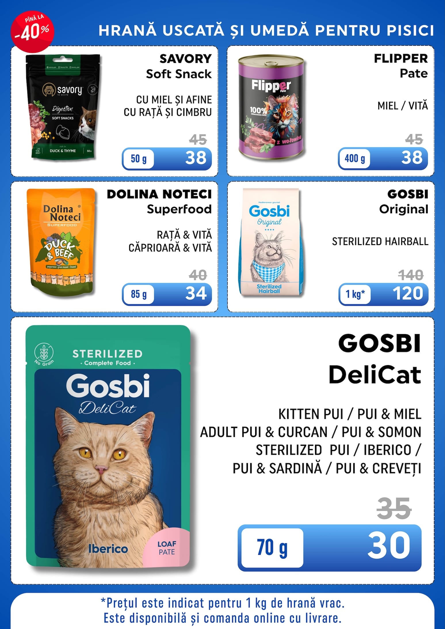 GOSBI DeliCat KITTEN PUI / PUI & MIEL ADULT PUI & CURCAN / PUI & SOMON STERILIZED PUI / IBERICO / PUI & SARDINĂ / PUI & CREVEȚI 70 g