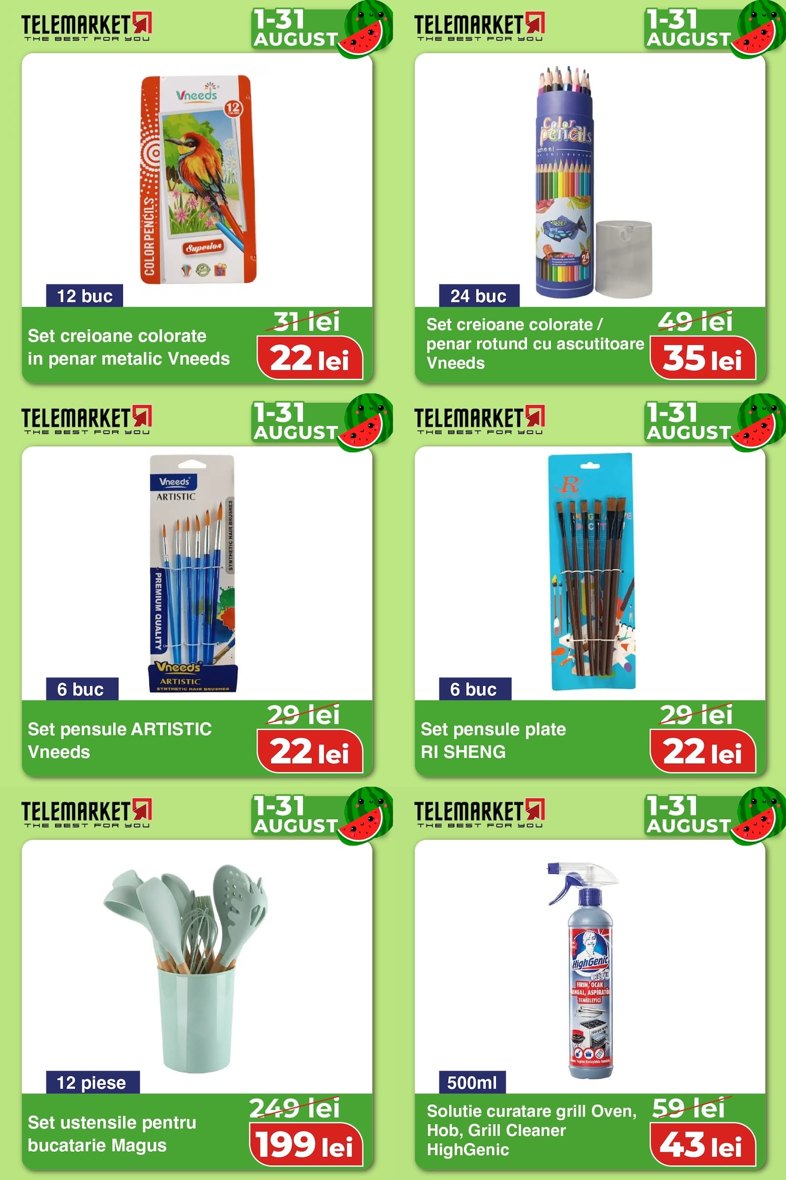 Set creioane colorate penar rotund cu ascutitoare Vneeds 24 buc