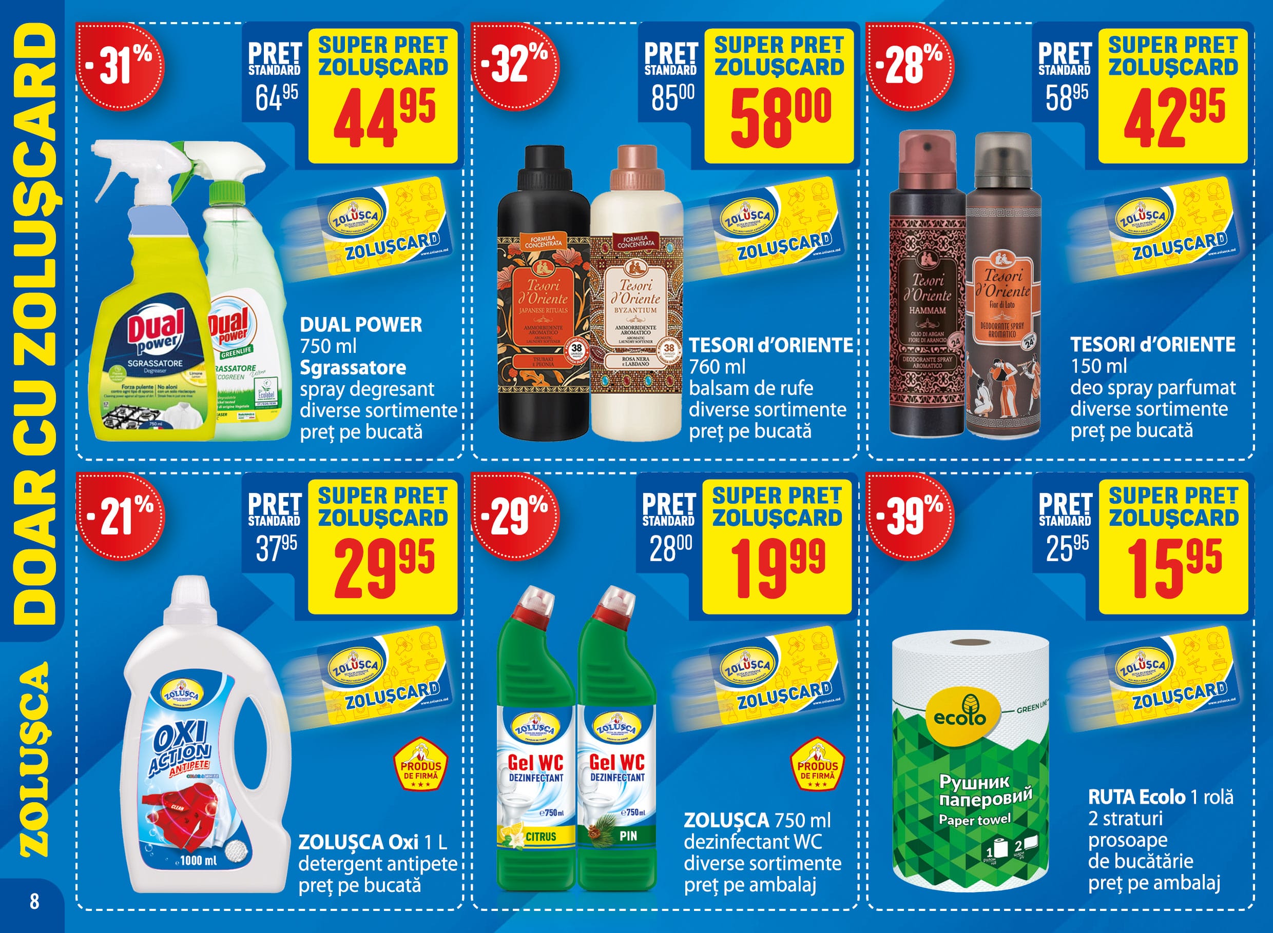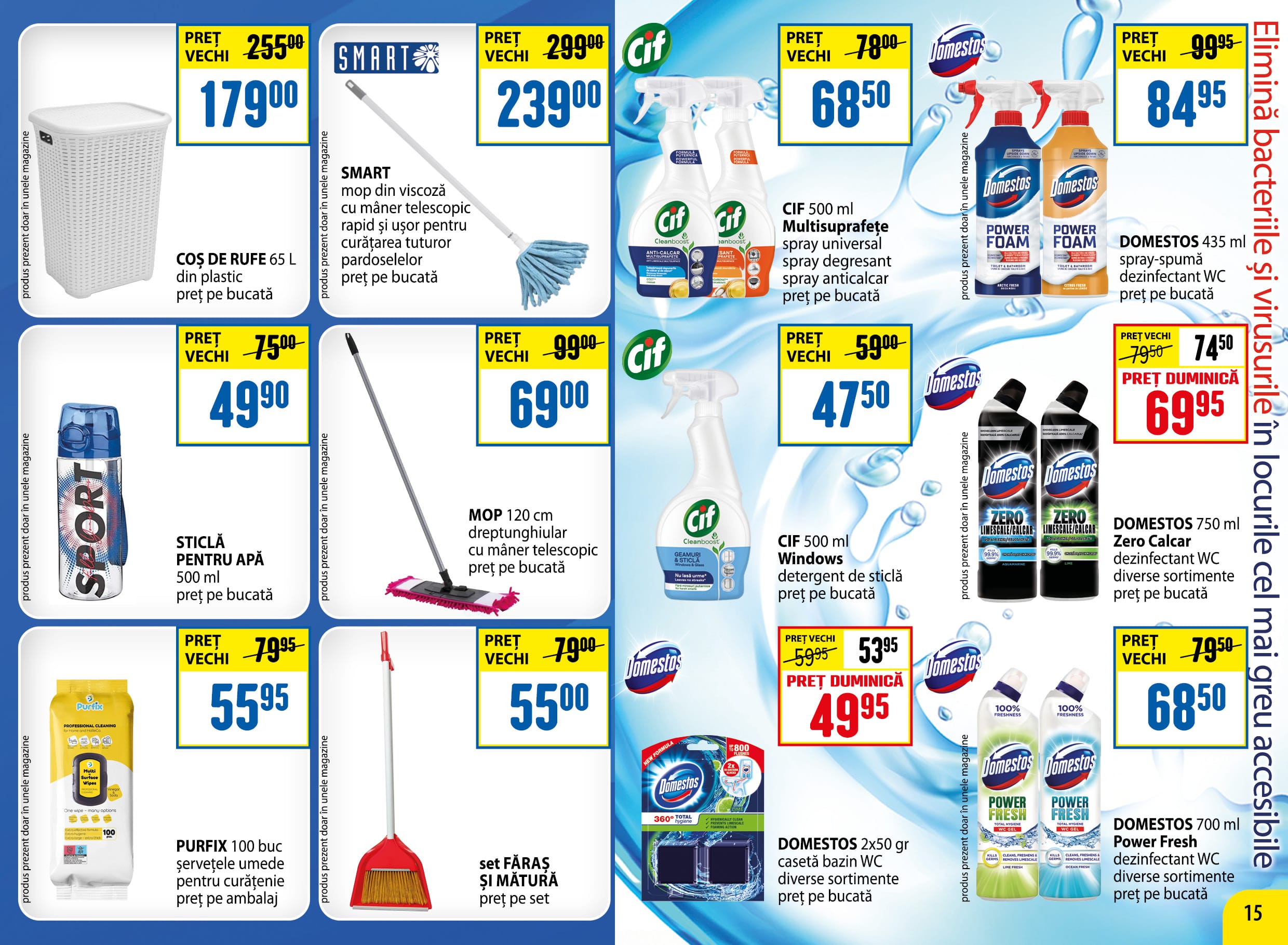 DOMESTOS 750 ml Zero Calcar dezinfectant WC diverse sortimente preț pe bucată