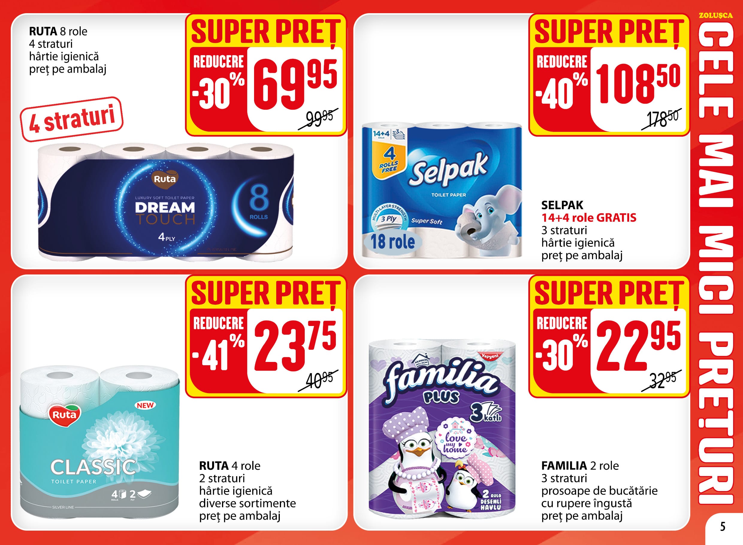RUTA 4 role 2 straturi hartie igienica diverse sortimente pret pe ambalaj