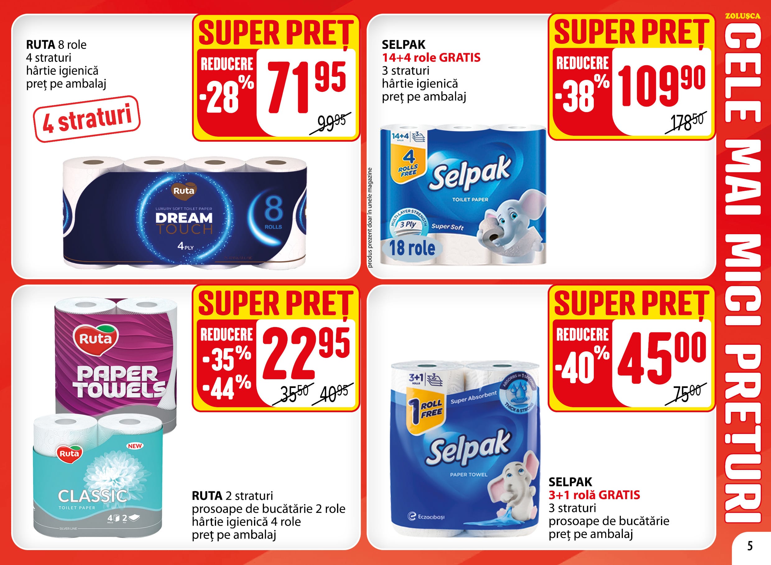 Ruta Paper Towels Prosoape de bucătărie 2 role hârtie igienică 4 role
